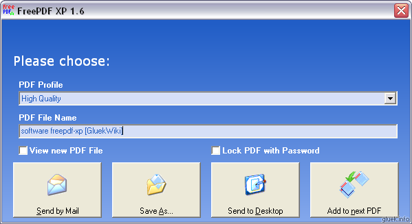 Обратите внимание на возможность создать один PDF документ путем объедиения нескольких результатов печати (возможно и из разных программ) — «Add to next PDF».